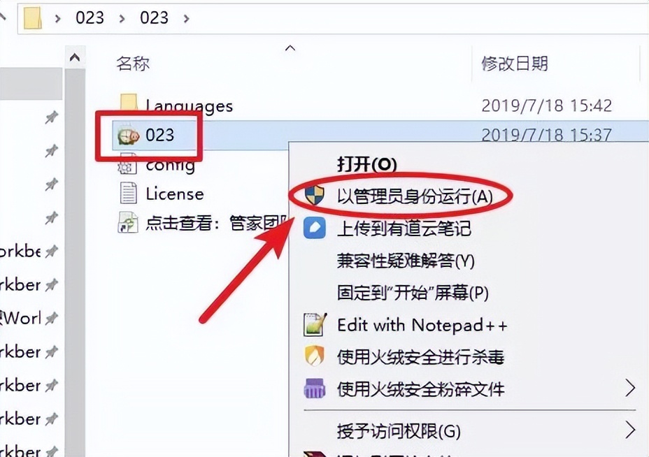 4.打開解壓后的文件夾,鼠標右擊【023】選擇【以管理員身份運行】。