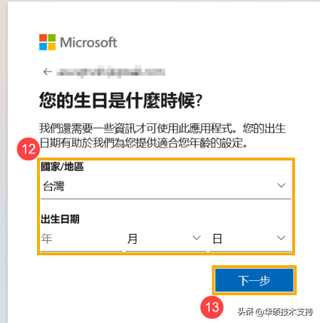 7,請輸入您的國家/地區和出生日期?,然后點擊[下一步]?。