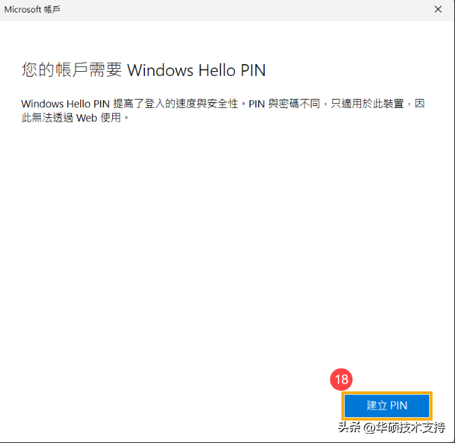 10,Windows為了提高登入的速度和安全性,可能會需要您使用PIN碼登入,請點選[建立PIN]?。