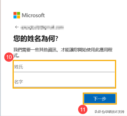 6,請輸入您的姓氏與名字⑩,然后點擊[下一步]?。