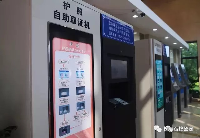 這個時候,我們就需要帶上身份證,來到市局人口與出入境大廳的右手邊——自助辦理通道!找到護照自助取證機,按照提示取證即可。