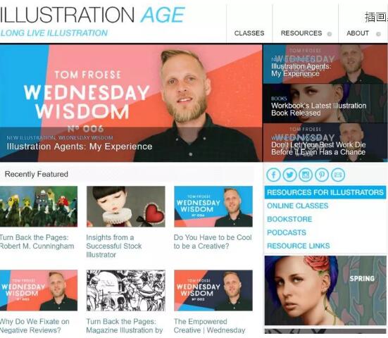 ILLUSTRATION AGE 插畫分享平臺,每周都會分享一名漫畫/插畫家。網站匯集了大量、專業的插畫資源的博客和網站,包括在線課程、數字創作工具、書籍、播客等等。