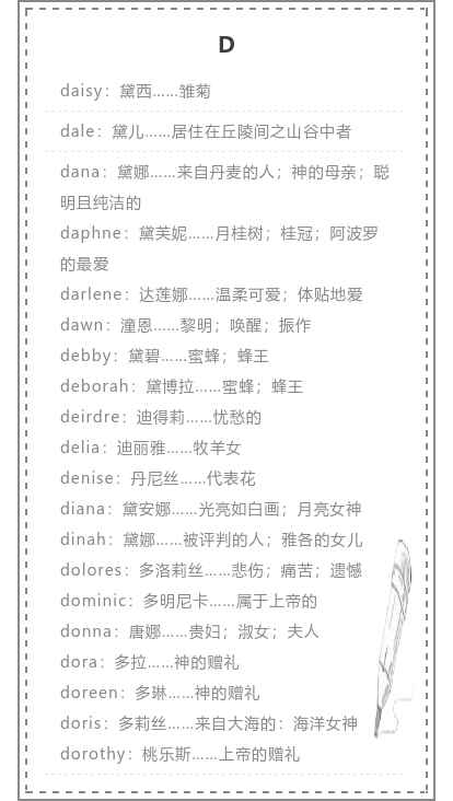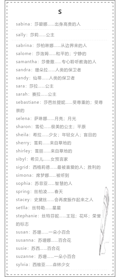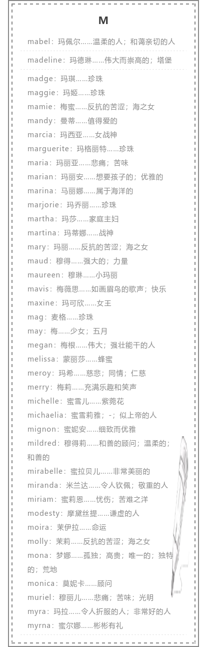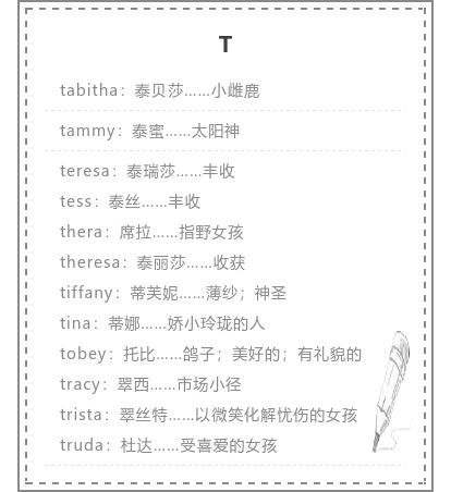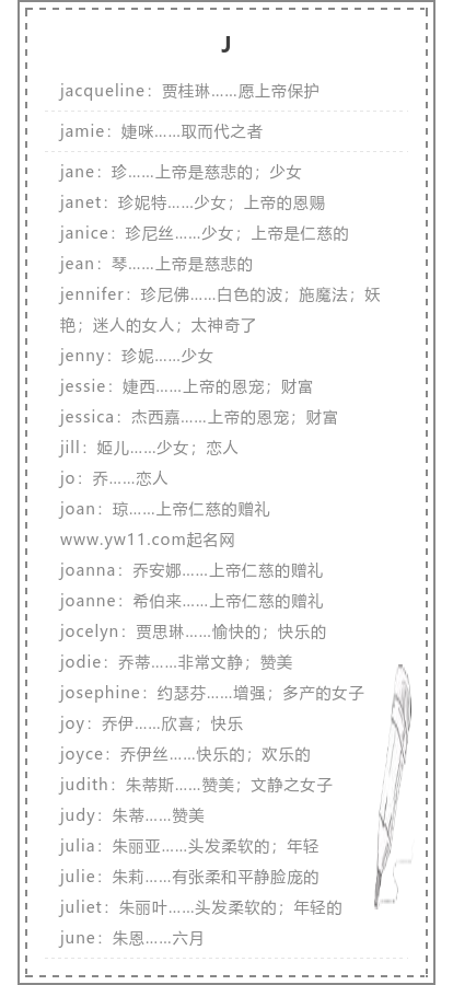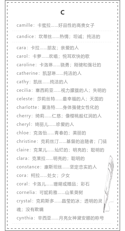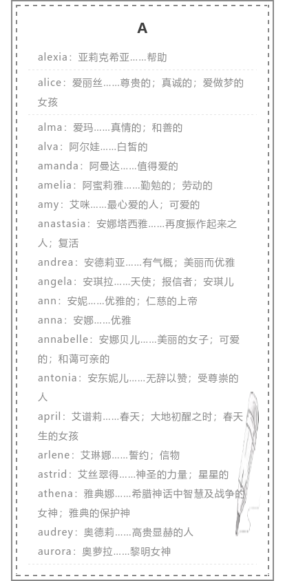 不過不要擔心,在這里給大家精心挑選出一些中既好聽、寓意又好、重名概率又低的適合女生用的英文名。