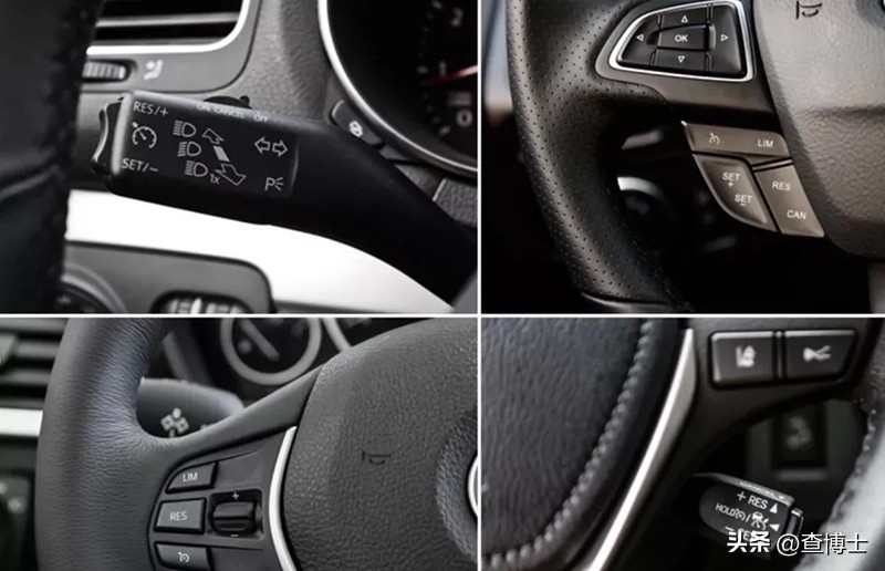 由于各個汽車品牌設計的方向盤造型不一樣,所以定速巡航的開關樣式與位置也有很大差別。